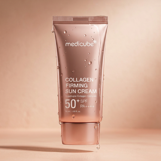 O Protetor Solar Firmador com Colágeno da Medicube é um protetor solar multifuncional que combina cuidado com a pele, proteção UV e efeito iluminador em apenas 1 minuto. Com 4 tipos de colágeno na fórmula, ele promove firmeza, melhora o tom da pele e proporciona um brilho natural instantâneo.